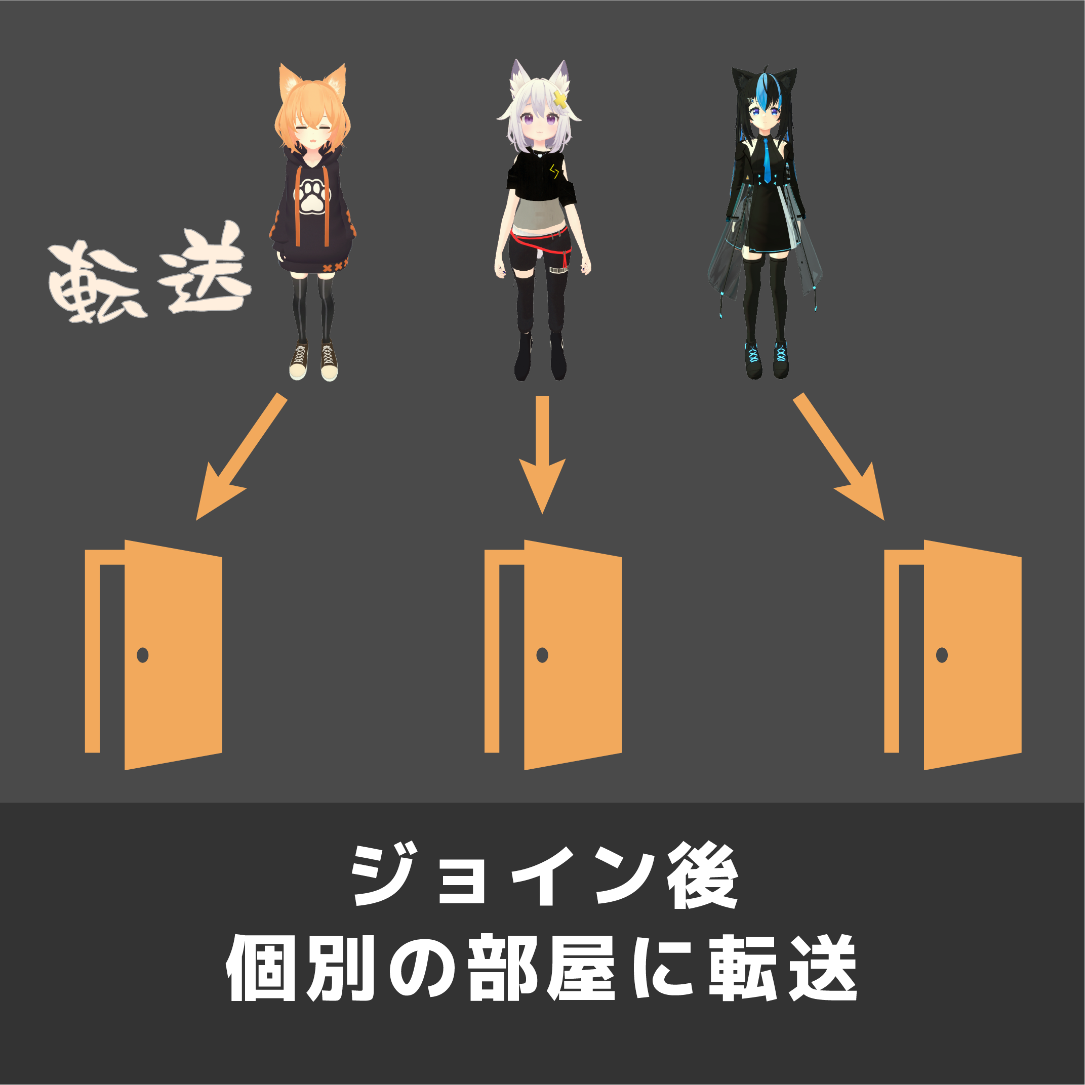 ワールド入室後、個別のエントランス部屋へ転送し、同意後メインエリアに転送する仕組みを簡単構築します。