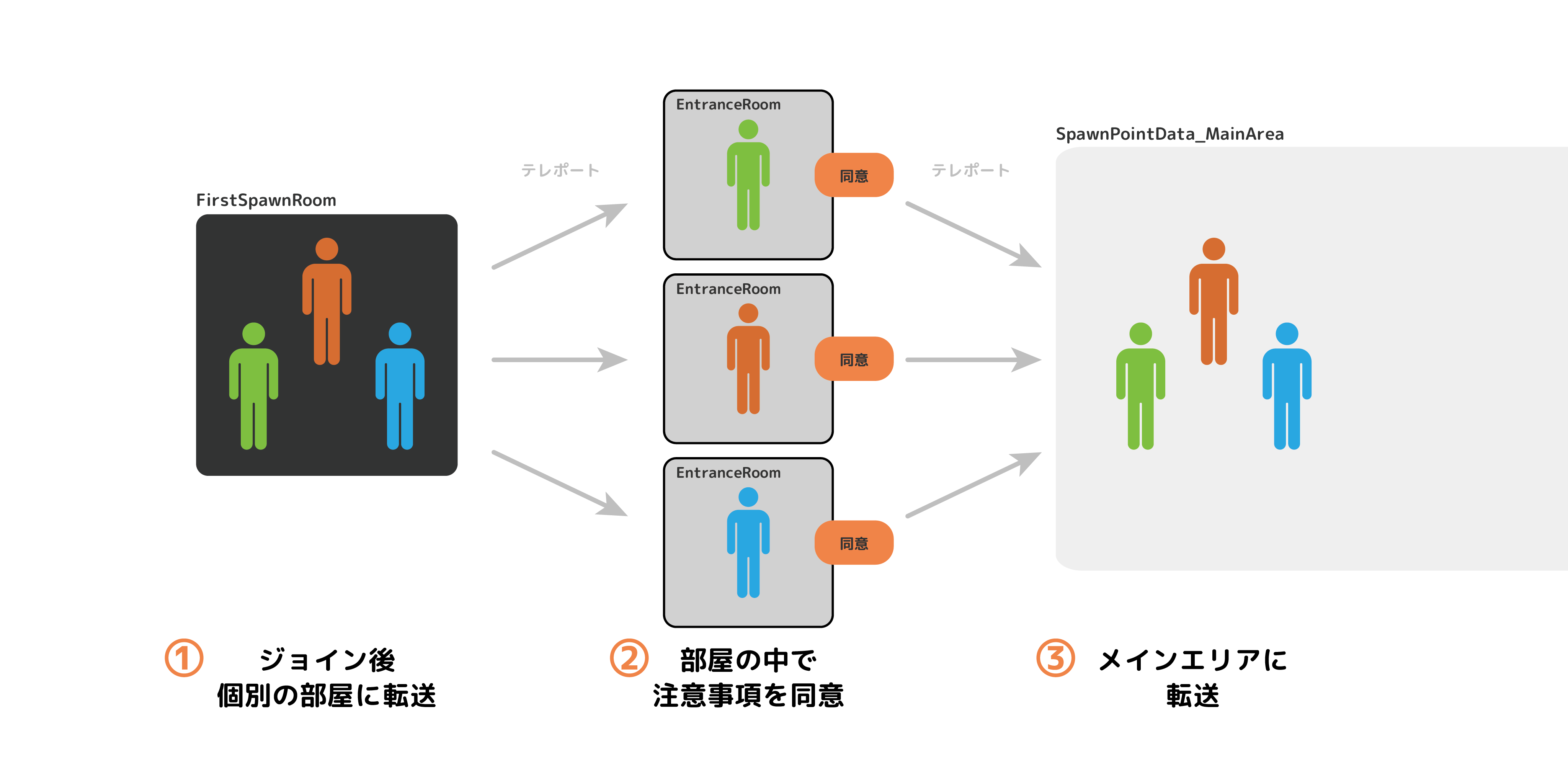 ERSFirstSpawnRoomオブジェクト) - Udonの同期完了後、個別の部屋(