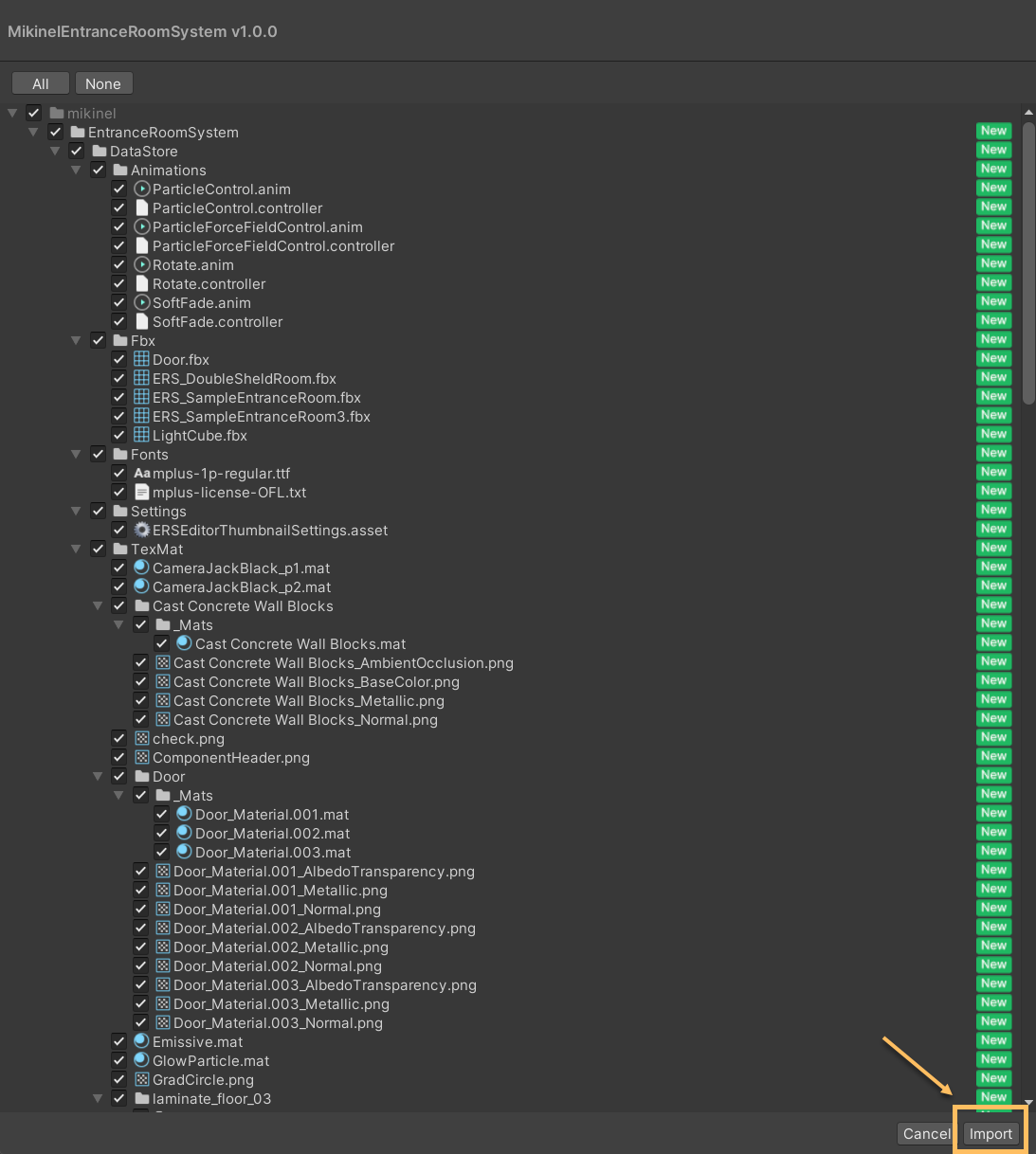 - インポートダイアログですべてのファイルにチェックが入っていることを確認