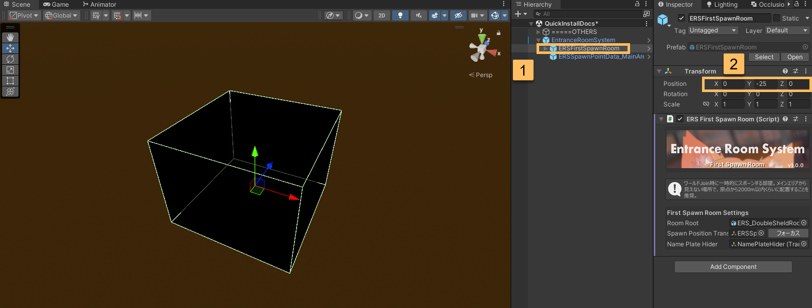 2. EntranceRoomSystem.prefab の配置