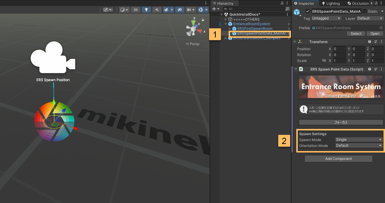 - Orientation Mode(スポーン時の回転設定)